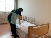 リネン交換中のスタッフさん