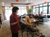 歩ける方は中庭へ出てお散歩を行いましたよ。