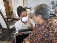 昨日、入居者様と一緒に桜を見に行っていた女性は