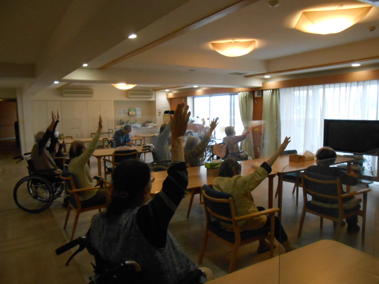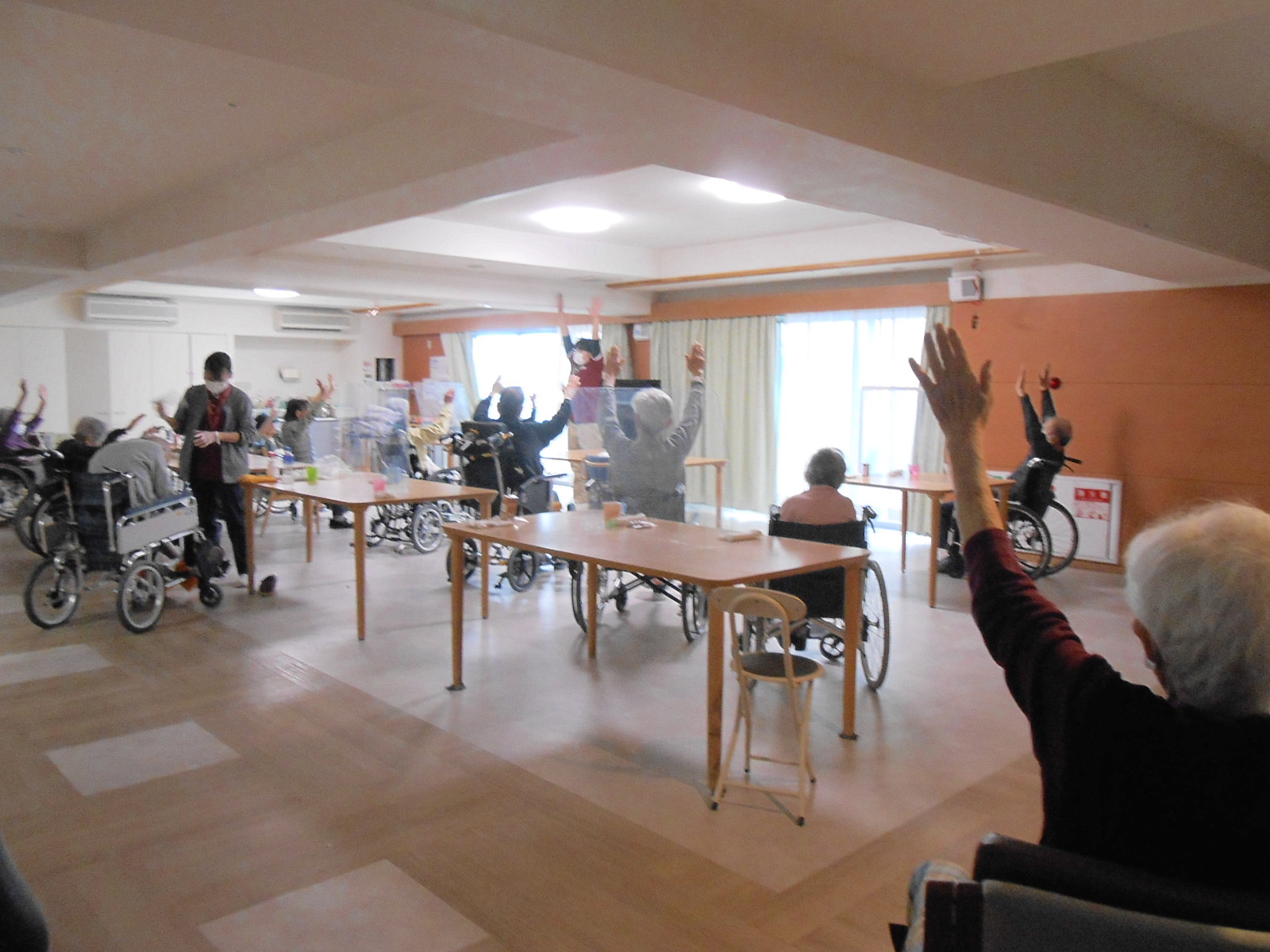 今日も体操の時間が始まりました。