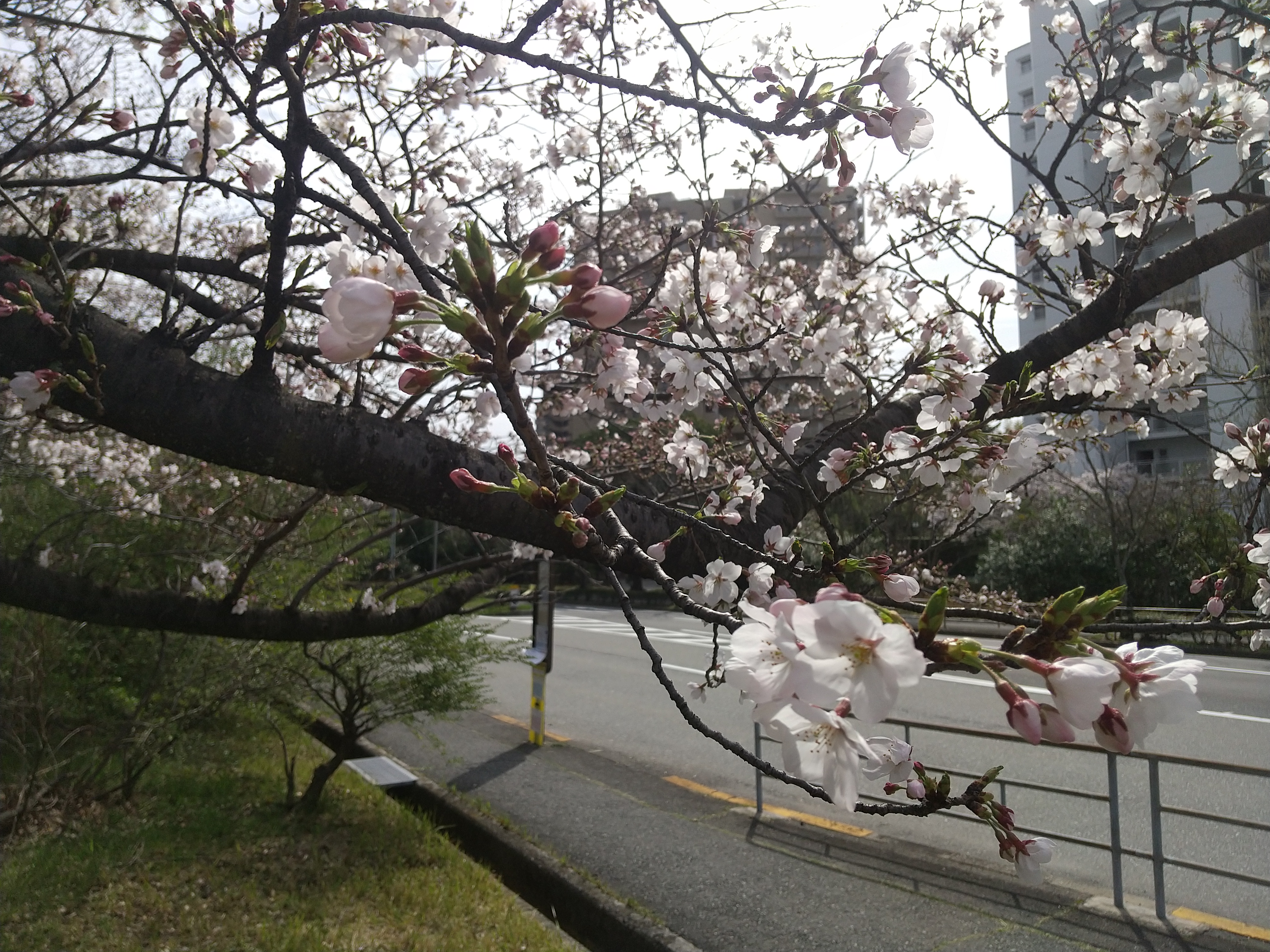 別府市雨と風が強い日が多く散り始めている所も有るので