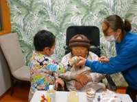 おやつ前にご家族様3名が施設にお見えになり、ささやかなお誕生日会を