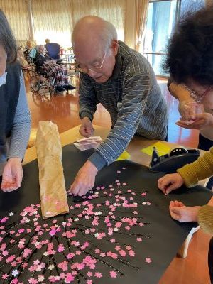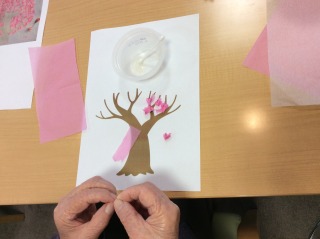 桜の貼り絵に挑戦してくださっています