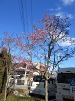 敷地内にある、緋寒桜がすでに咲いております‼