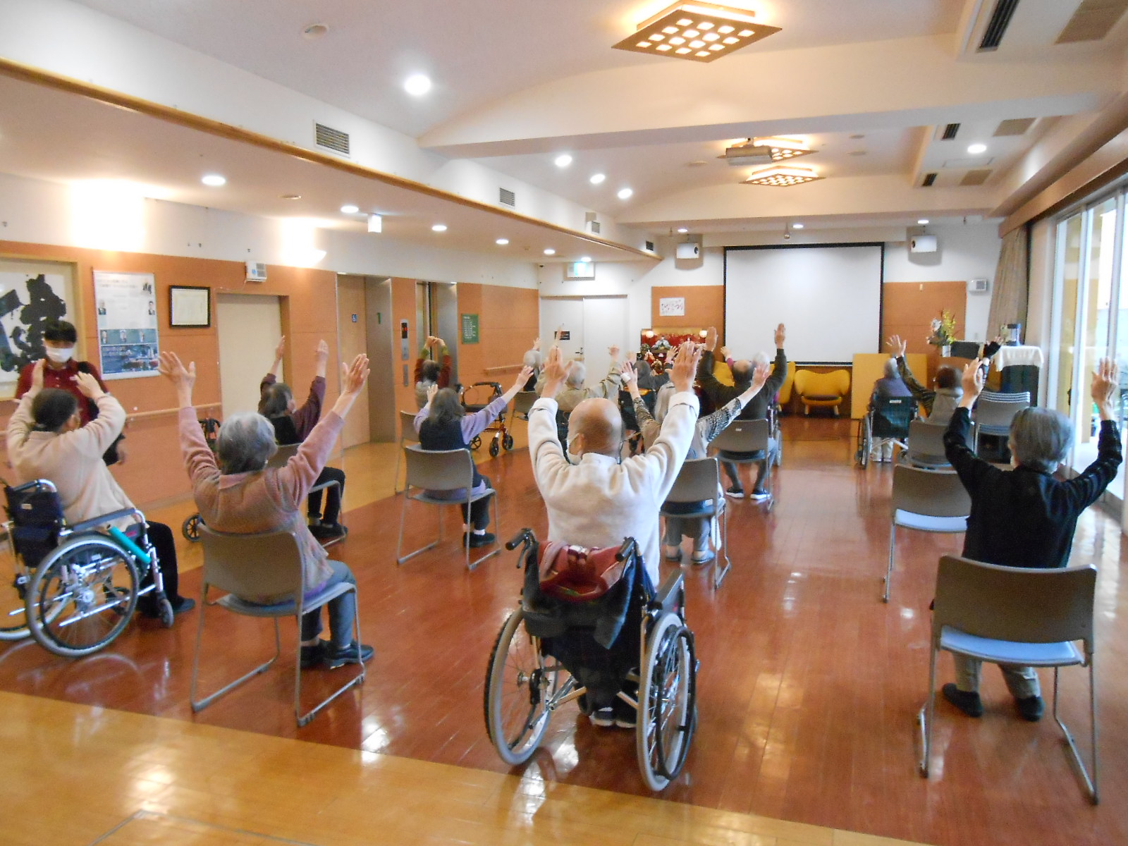 今日は音楽療法の先生が来てくださいました。「歌が大好き!」と新しく入られた入居者様にもお声がけさせていただいています。スズを使っての時間は、皆さん喜んで腕や手を動かして音を出されています。