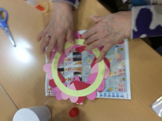 ハートで制作しようと試み皆様にお手伝いしてもらっています