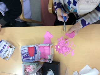 ハートで制作しようと試み皆様にお手伝いしてもらっています