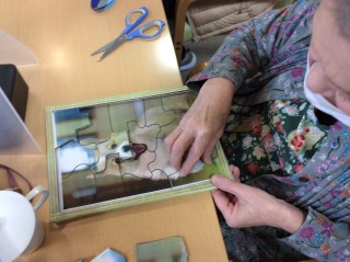 今日はちぎり絵教室の日でした。今回の下絵は季節のお花でもある椿を用意しました!「手先がしびれてるから手伝って欲しいよ」とおっしゃる方もいるので職員もちぎるお手伝いで参加させてもらいました(*^_^*)赤はもちろんピンクや紅色など同じ下絵でも色が違うと個性が出て素敵な椿になっていました♪ 完成までいかない方も多くいらっしゃったので、お昼休みなどで完成させたいと思います!