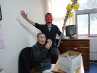 昼からは👹鬼退治に丸めた新聞で特大豆まきを行ないました。