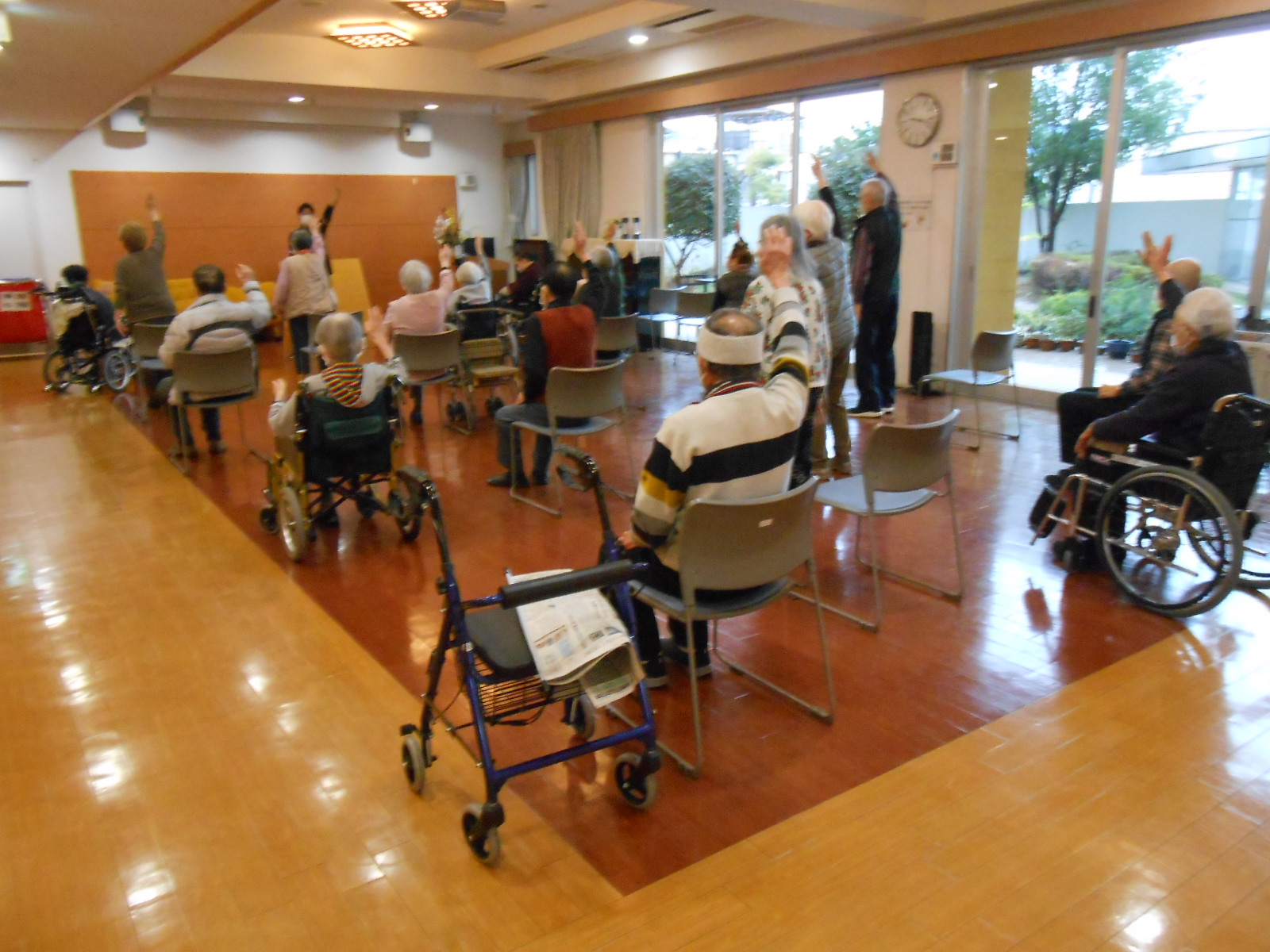 今日の午後は脳トレホワイトボードを使い脳トレを行いました。真ん中に入る文字は何?とスタッフが書き始めると「分かったわ」「もしかするとあれ?」と皆さん答え始め「皆さん早すぎますよ!!!」と笑いながら脳トレをしました。外は雪が降り寒そうでしたがレクではとても盛り上がりポカポカでした。次回も楽しみましょう(*^^)v
