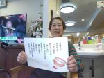 仲良しの入居者様から、Happybirthdayソングを歌ってもらい、ニコニコ笑顔で少し照れていらっしゃいました。