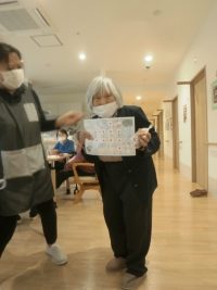 ポーズをとられたり、サンタクロースを探されたり、サイコロで5が出るまで回さないといけないゲームなどがあり身体を良く動かされて気分転換になられたようです♪