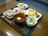 赤飯・天ぷらの盛り合わせ・刺身・茶碗蒸し・清汁です。