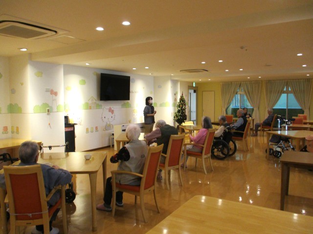 こんにちは、シーハーツ柏です。 クリスマスディナー続編🍷 サクソフォンの演奏後、渡邉施設長からお礼のあいさつがあり、入居者様に向けては、「来年も同じメンバーでクリスマスを迎えられるようにしましょう!」と、エールをいただきました。サクソフォンの生演奏でうっとり、心が満たされた入居者様とスタッフは心地よい雰囲気のなかでクリスマスディナーへ。 ディナーのメインディッシュはチキンステーキです🐔 このステーキのお肉がとても大きく、食べ応えがあり、特に男性の入居者様は「おぉっ!鳥のもも肉だなぁ!これはおいしいはず!」と、チキンに目を奪われてしまいました。「食べ応えがあるわね。ああ、おいしい。」と、女性の入居者様にも好評でした。いつもと違う雰囲気のなかでゆったりとディナーを味わっていただくことができました。特別感のある、素敵な1日となりました。入居者様が新年を元気に迎えられるように、スタッフ一同邁進してまいります。