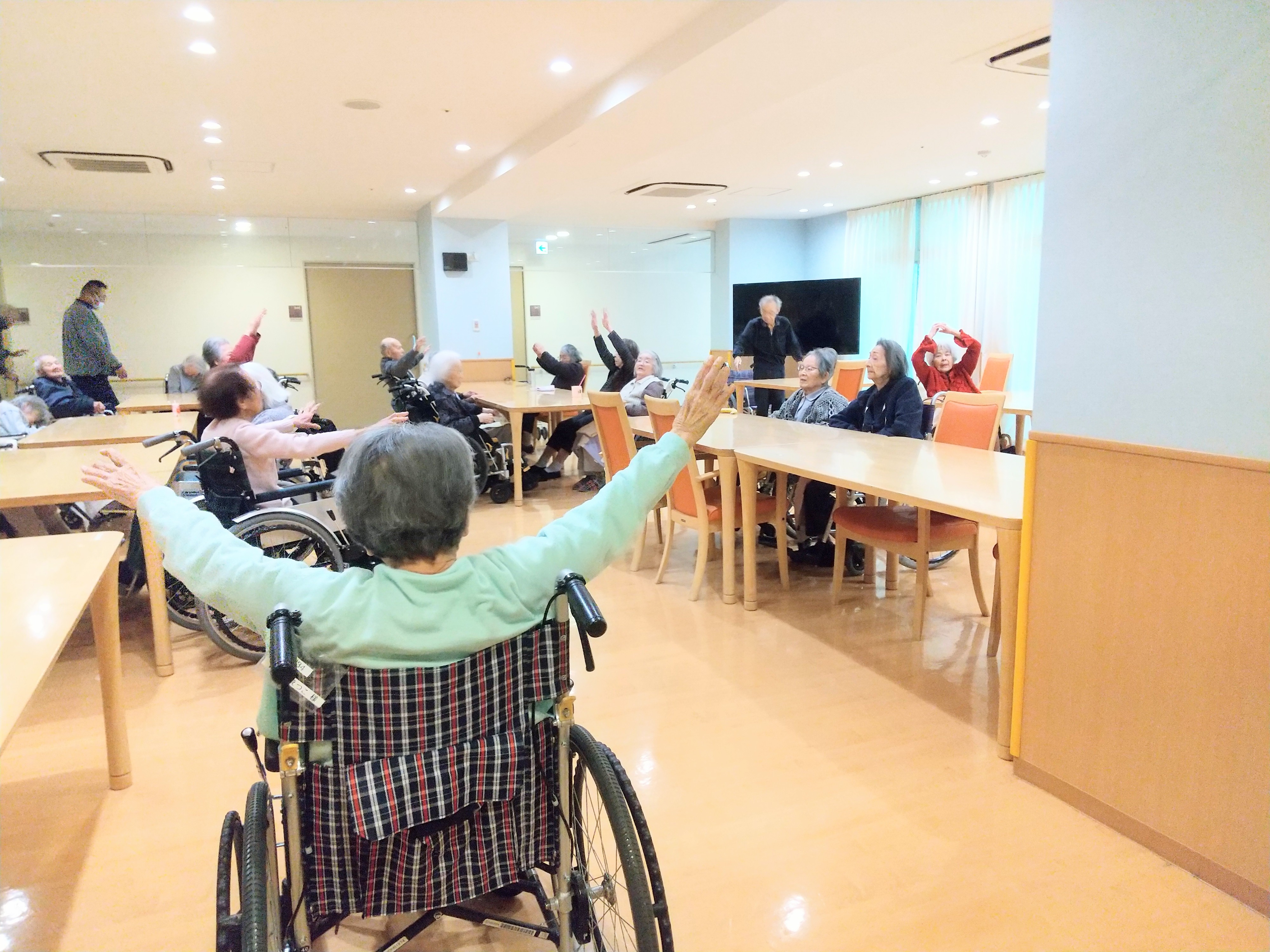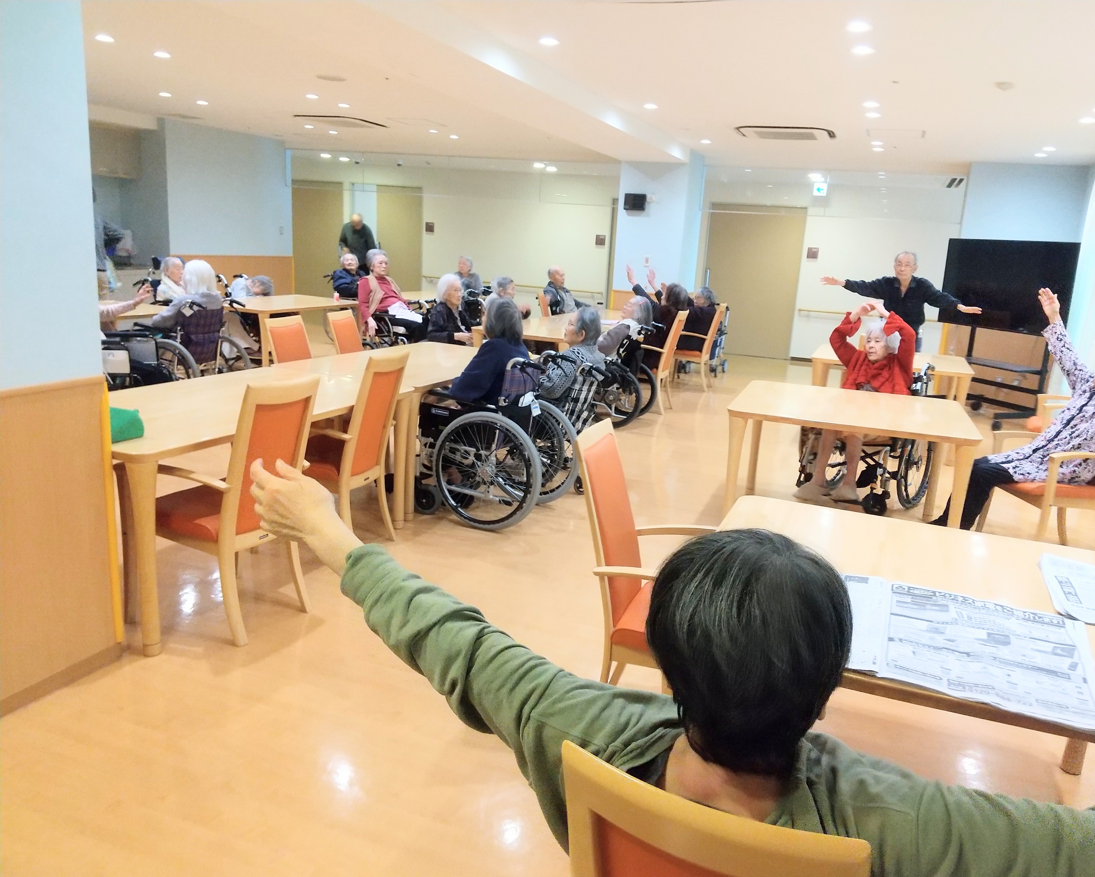 ラジオ体操の次にする嚥下体操も、事務所まで入居者様の大きな声が聞こえてきます(*^^*)