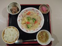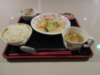 鶏のクリーム煮、きのこの和風ソテー、漬物、スープ、ご飯