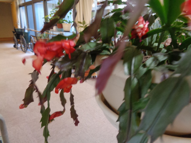 こんにちは、デイサービスです。今日はご利用者様に大好評のレク、翌月のカレンダー制作を行いました。12月といえばクリスマスの花として有名なポインセチアということで、折り紙でポインセチアを作ってみました。ちなみにポインセチアは赤いのは花ではなく葉っぱで花は中央の黄色い部分とのことです。ご利用者様に教えていただきました(^○^)花の位置やバランスを考えて糊で貼って、カレンダー部分は色鉛筆でカラフルに塗って完成です。皆さんとても嬉しそうにお互いの作品を見せ合っていらっしゃいました(*^_^*)