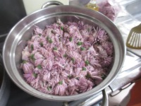 さっと茹でて甘酢につけた菊の花はきれいなピンク色で