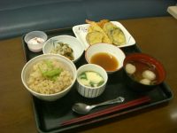 炊き込みご飯・天ぷら盛り合わせ・茶碗蒸し・舞茸と春菊の梅肉和え・