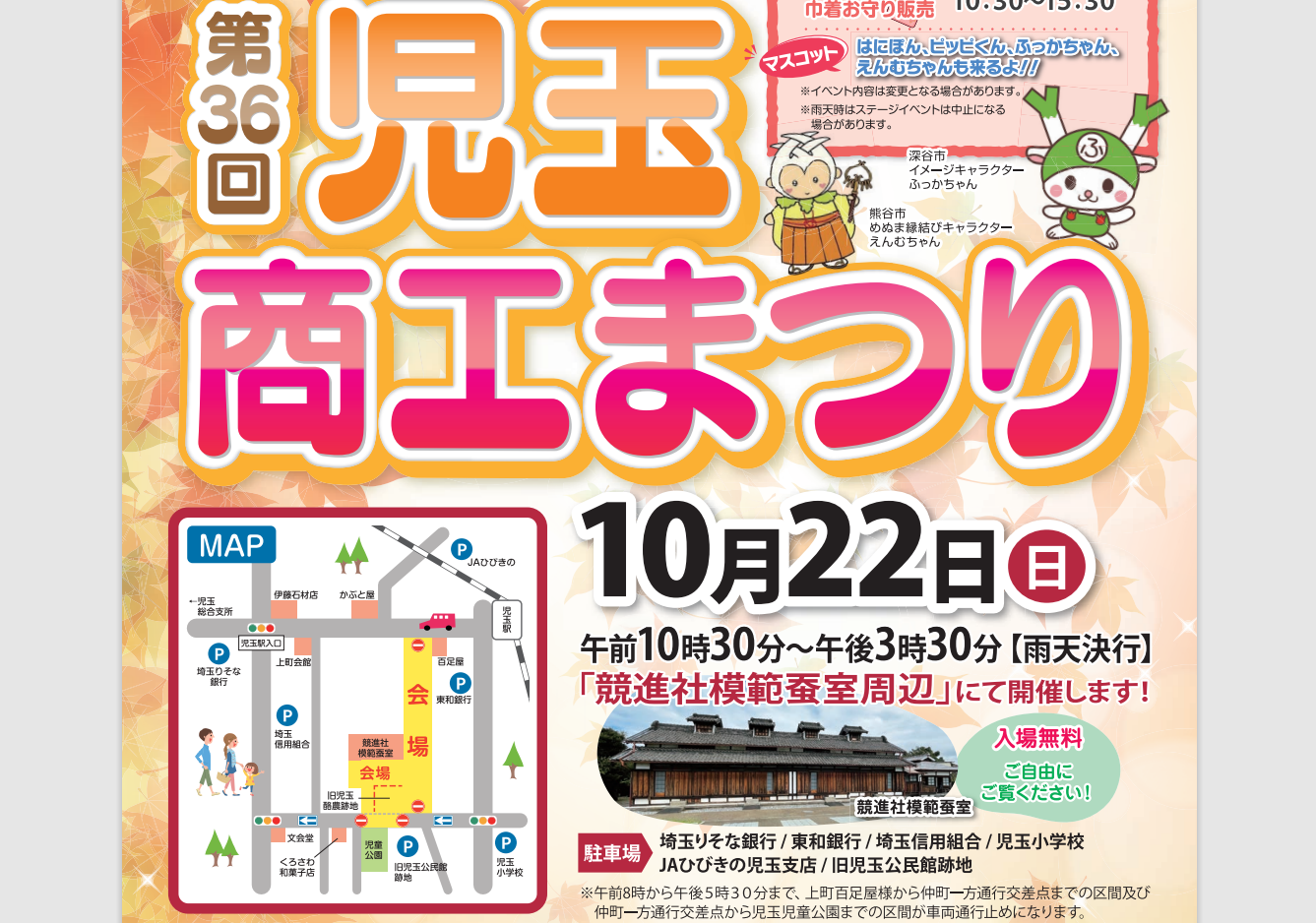 深谷のお隣にある本庄市で「第36回児玉商工まつり」が開催されるようです。
