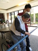 平行棒を使って、立ち上がり練習を頑張るM様。