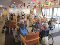 今日は14:00から1F多目的ホールで『音楽療法』を行いました♪ 先生をお招きして音楽に合わせてお歌を歌ったり、体操をしたりしてとても楽しいお時間でした(*´▽`*)