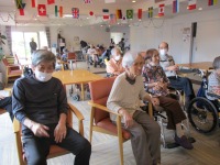 こんにちは、デイサービスです。今日は職員手作りの的当てゲームを行いました。円形の手作り的にめがけてお手玉を6個投げてもらいます。中心のとても小さい円は200点となっていたのですが、なんと200点を出すご利用者様が何人もいらっしゃるという奇跡も起きました(*^_^*)皆さん、ご自分の順番でないときも高得点を出すアドバイスや応援をしっかりとしてくださいます。しっかりと体を動かし、笑い声もあふれる有意義な時間が過ごせました♪