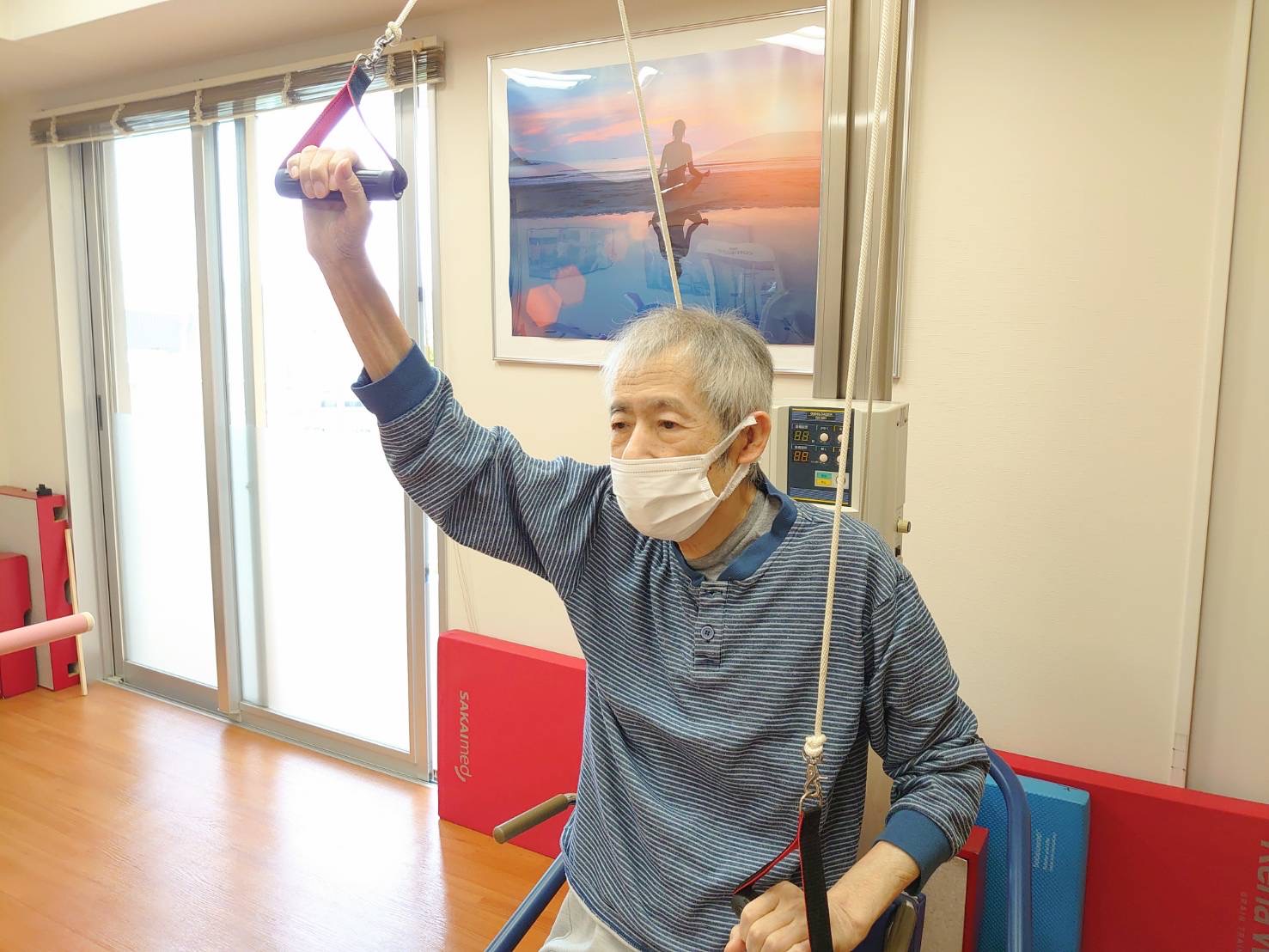 入居者様は元気よくリハビリ取り組まれております。 器械運動と個別訓練を常に行っております。