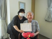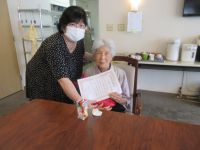 シーハーツ川口で本日、敬老の日のイベントにて、ご入居者様の中で傘寿・米寿・卒寿・百寿・100歳以上の長寿の方を対象に記念品と賞状をその他の方には、感謝状を全員に紅白饅頭をプレゼントさせて頂きました。