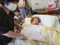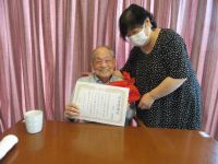 シーハーツ川口で本日、敬老の日のイベントにて、ご入居者様の中で傘寿・米寿・卒寿・百寿・100歳以上の長寿の方を対象に記念品と賞状をその他の方には、感謝状を全員に紅白饅頭をプレゼントさせて頂きました。