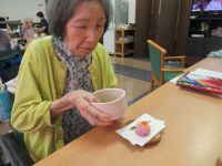 「綺麗なお菓子だね」と職人の技に感動✨ ケアマネさんのお抹茶も「良いお点前で」と美味しく頂いてくださいました( *´艸`)