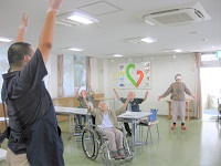 窓の外の猛暑を横目に、涼しいホールで元気に体操をしました♪