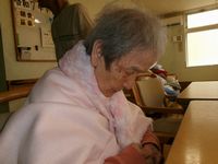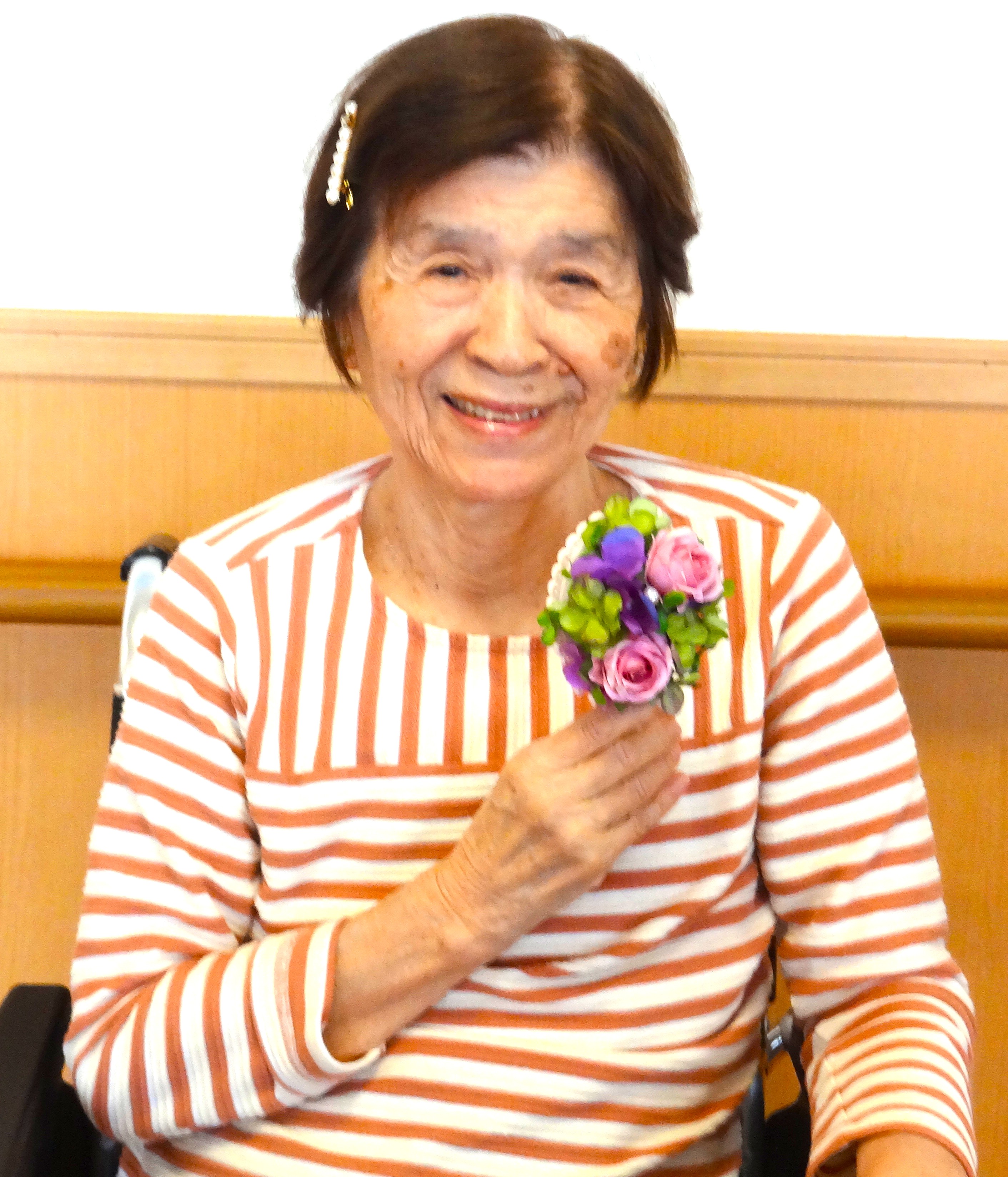 101歳の淑女♪ 寒いと仰られる為、この猛暑もエアコンの聞いたリビングでは長袖シャツの上に肩掛けをして過ごされました(^_^;) 「真夏でぇ~??」「年取ると寒いんや!!」のやり取りが何度繰り替えされたか♪ こっそり証拠写真を撮るつもりがフラッシュで気付かれてしまい、正面から撮影すると一瞬、ニヤッとされてしまいました♪
