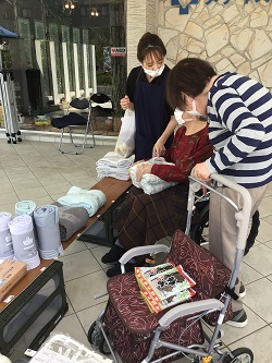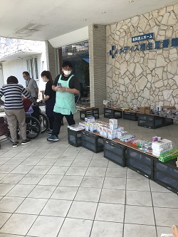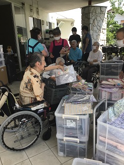 さて熱い午前のイベントが終わり第二部は、まずみんな知っているカインズホームさん、洋服移動販売のふじやさん、市場直送の野菜・果物販売とお店がやってきてくれました(∩´∀`)∩やったね カレーを食べたあと、小休憩をはさみ始まりました。混雑しないようお声がけさせていただきましたが、1時間じっくりと買物を楽しまれた入居者様もいらっしゃいました。タオルケット、靴下、肌着などを手にした方が多かったです。前回もですが「あかすり」が一番人気だったとようです。(個人的な意見です)他トイレットペーパー(こちら個人的にも購入させてもらいました。)ティッシュなど日用品を手に取り選び購入とかつては当たり前だったことができてよかったなぁと思うのでありました。3年ぶりとなるイベント開催と年を重ねた体で昨晩は9時前に就寝いたしました。頑張った分喜んでもらえたら と勝手に願うのでありました(*’▽’)