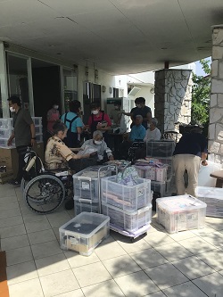 さて熱い午前のイベントが終わり第二部は、まずみんな知っているカインズホームさん、洋服移動販売のふじやさん、市場直送の野菜・果物販売とお店がやってきてくれました(∩´∀`)∩やったね カレーを食べたあと、小休憩をはさみ始まりました。混雑しないようお声がけさせていただきましたが、1時間じっくりと買物を楽しまれた入居者様もいらっしゃいました。タオルケット、靴下、肌着などを手にした方が多かったです。前回もですが「あかすり」が一番人気だったとようです。(個人的な意見です)他トイレットペーパー(こちら個人的にも購入させてもらいました。)ティッシュなど日用品を手に取り選び購入とかつては当たり前だったことができてよかったなぁと思うのでありました。3年ぶりとなるイベント開催と年を重ねた体で昨晩は9時前に就寝いたしました。頑張った分喜んでもらえたら と勝手に願うのでありました(*’▽’)