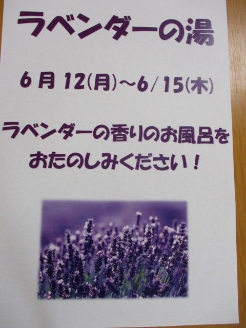 6月の入浴レクが決定しました♪ 紫陽花の季節なので紫陽花色のお湯という事で『ラベンダーの湯』です(*´▽`*)