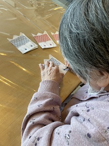 ゴールデンウィーク中にある子供の日に飾る、鯉のぼりの制作を行いました。皆様の手際が良く、どんどん進んで出来ていっている様子をご覧ください。