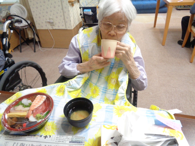 今日はカラオケの日です。女の方が多く楽しまれていました。最近入居された方もご一緒され、「私は歌えないけど聞いているだけで楽しい!」と参加されていました。「また来週もやろうね」と他の入居者の方に言われて喜ばれていました。