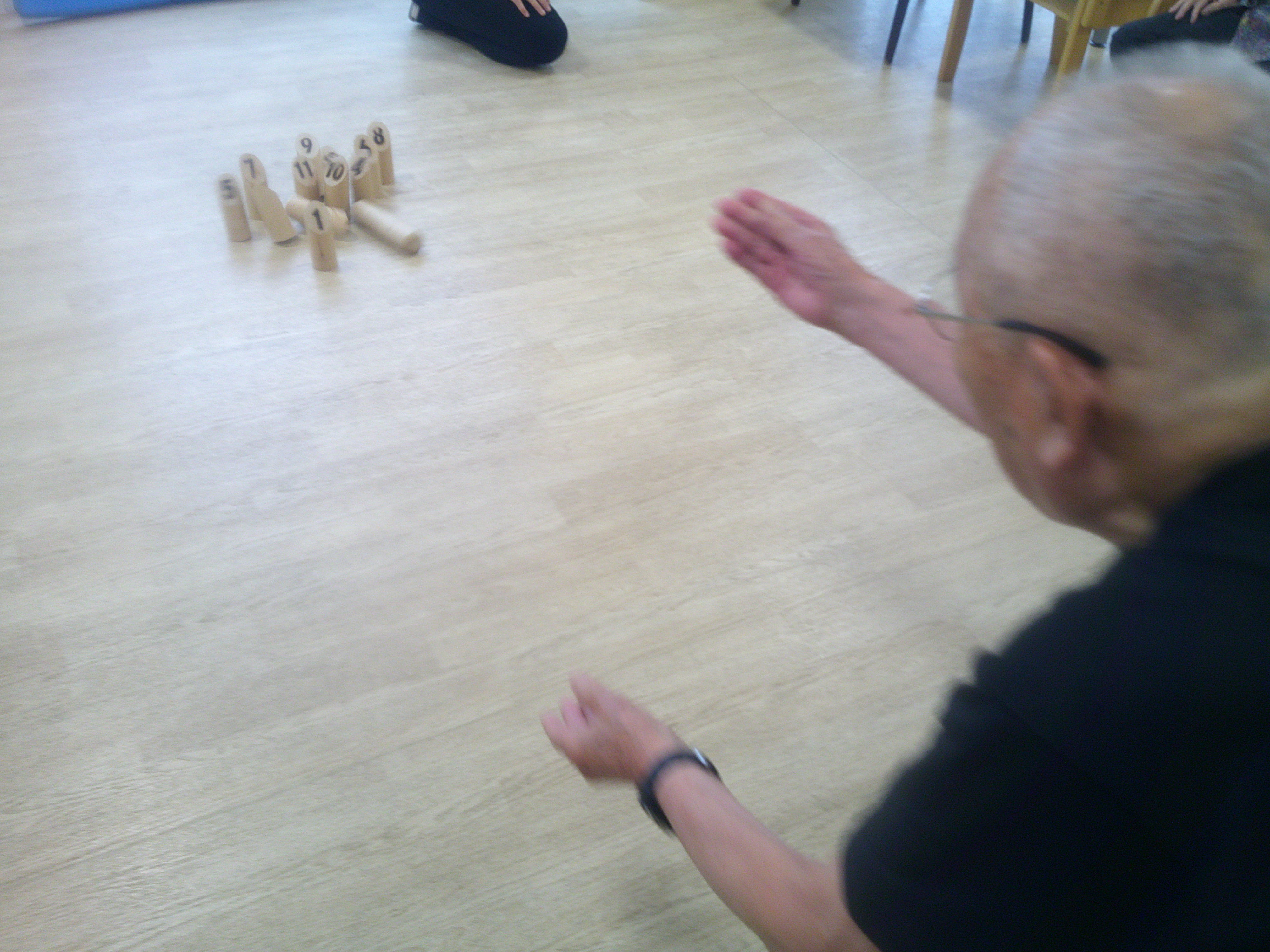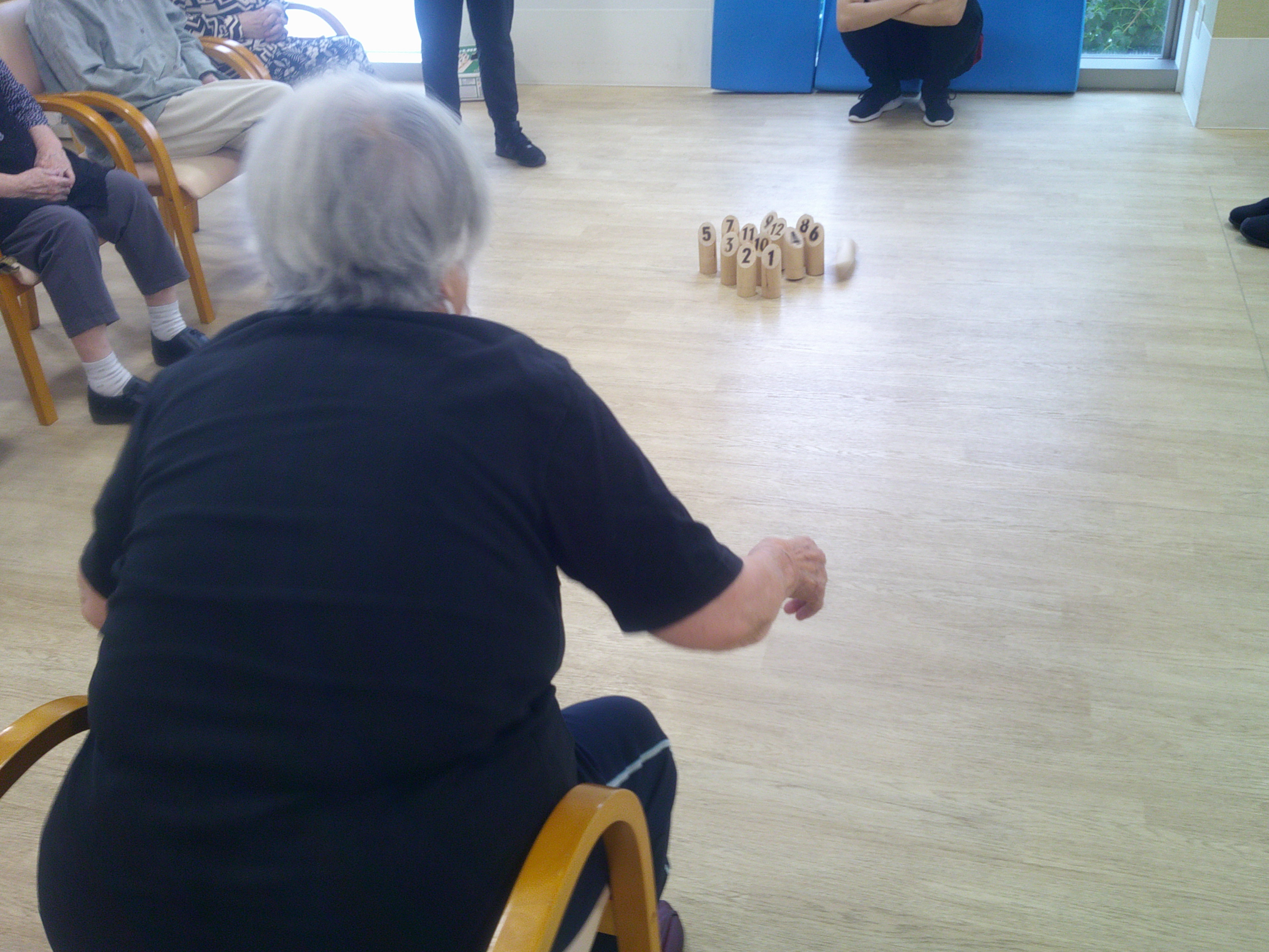 今日は恒例の音楽療法が開催され、武知先生の伴奏で歌ったり、体を動かしたりと