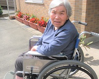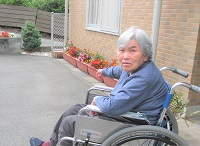 日差しが気持ちがいい時間帯に、入居者様と外気浴をしていた時の写真です。