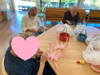 クラフトテープのカゴ作りに取り組まれておられます。