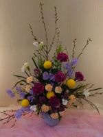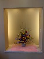 黄色が入って春らしい感じです。桃のお花?と聞いたら桜🌸だそうです。先生は桃のお花を使いたかったそうですが今年は桃が咲き遅れているそうでお花屋さんも雛祭りに向けて困っているとか・・・その分桜の開花の方が早いみたいです。お花もその時々で自然の物なので変化があるんですね!