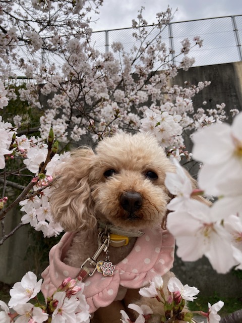 そうそう、桜の前にアイスクリームを食べたから、ルリの口の下が汚いままでした笑。