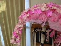 大漁の花びらをビニール傘に貼り付け、桜の木を作る様です。