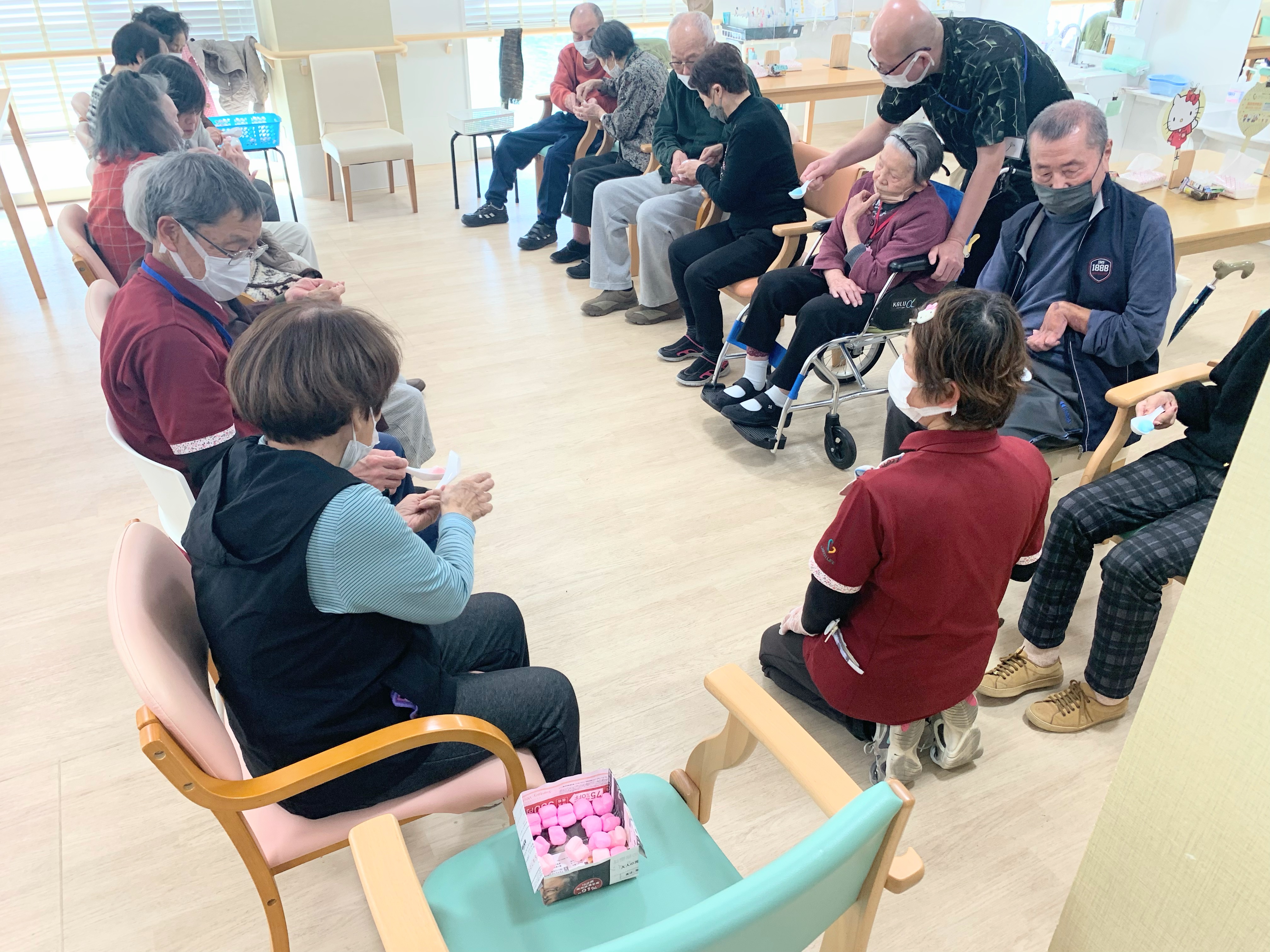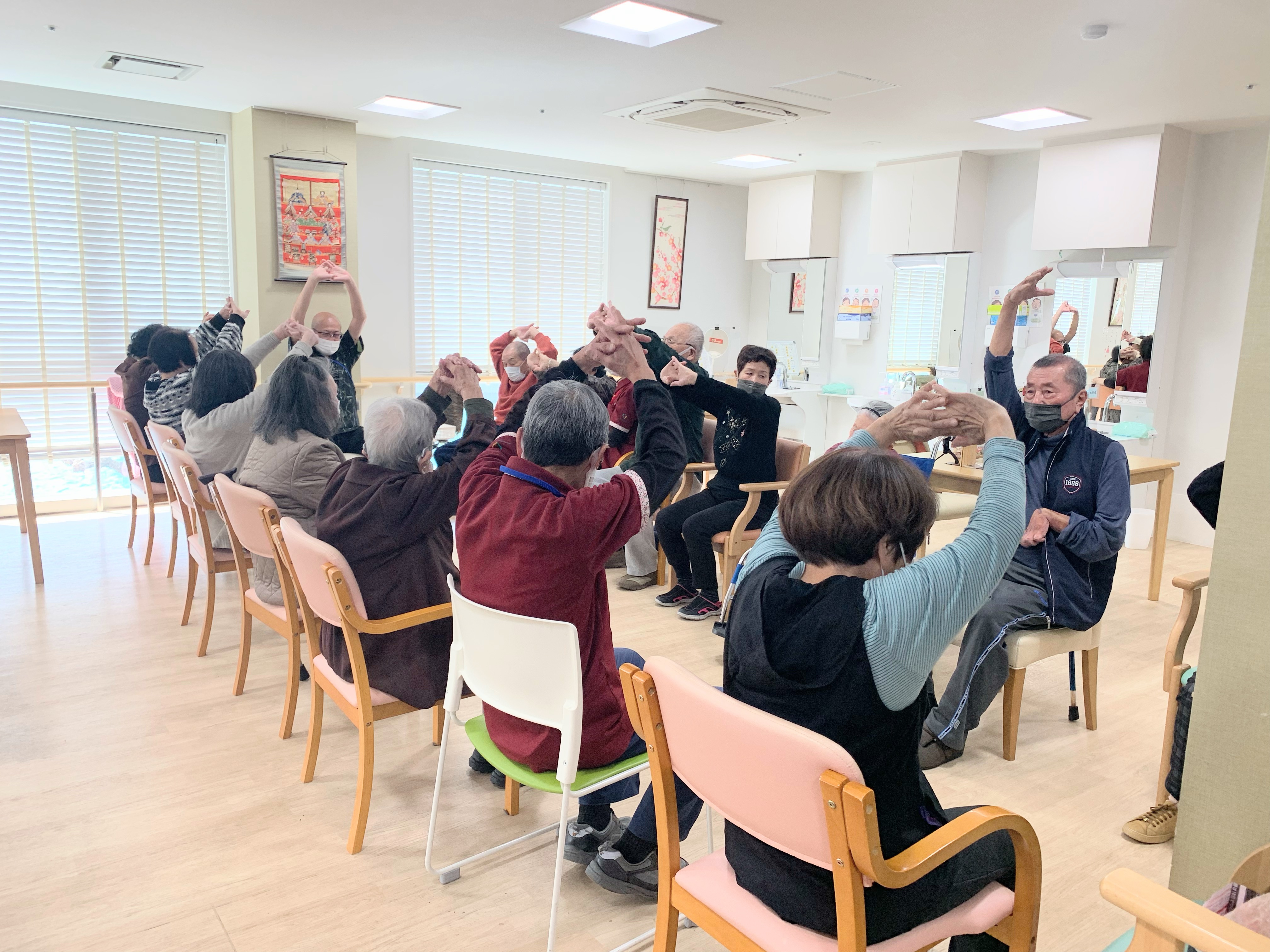 器械運動、体操、歩行、レク、入浴