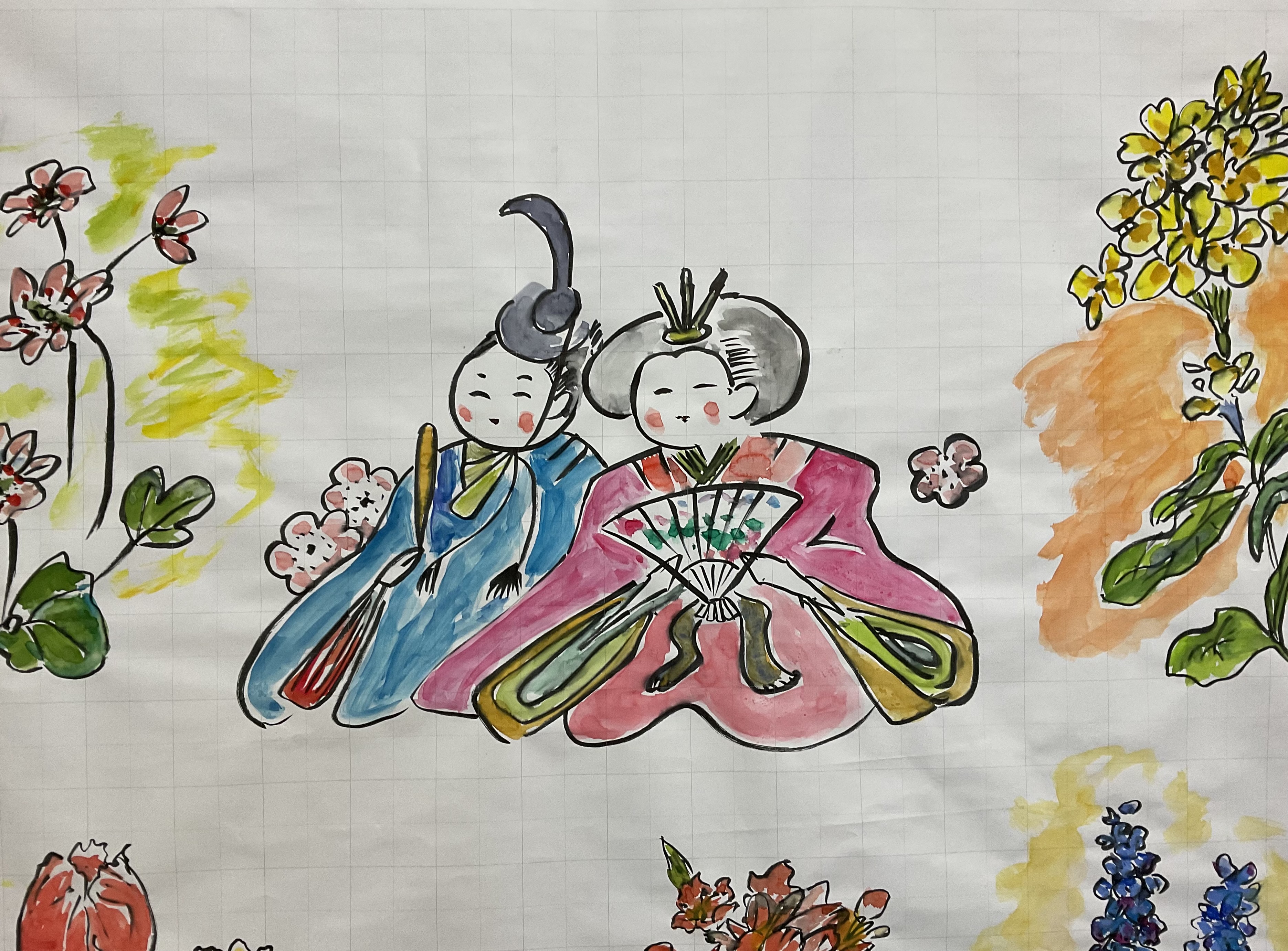 宮代でも、絵描きが得意なスタッフがお雛様とお内裏様を描いてくださりました。🎎