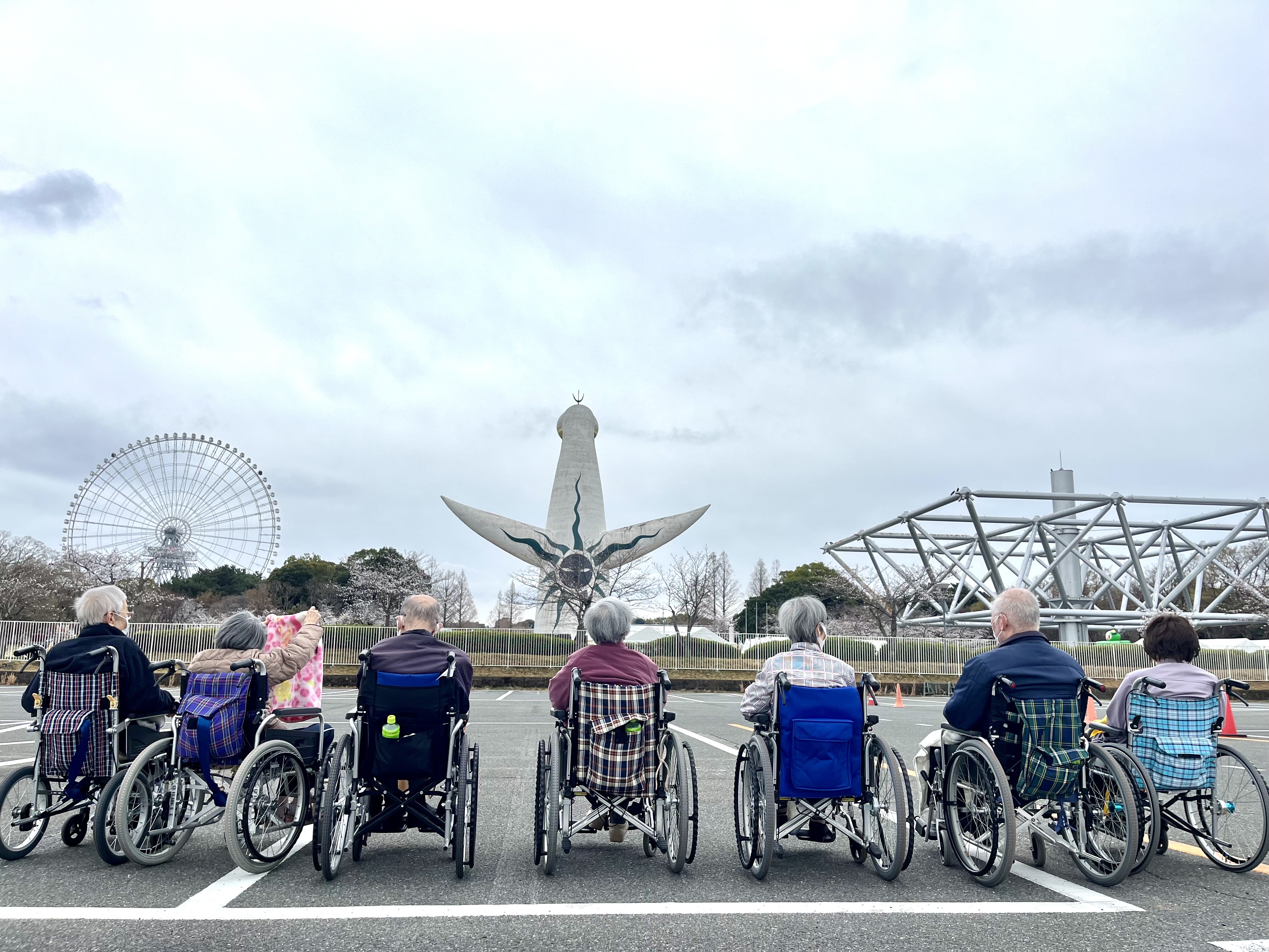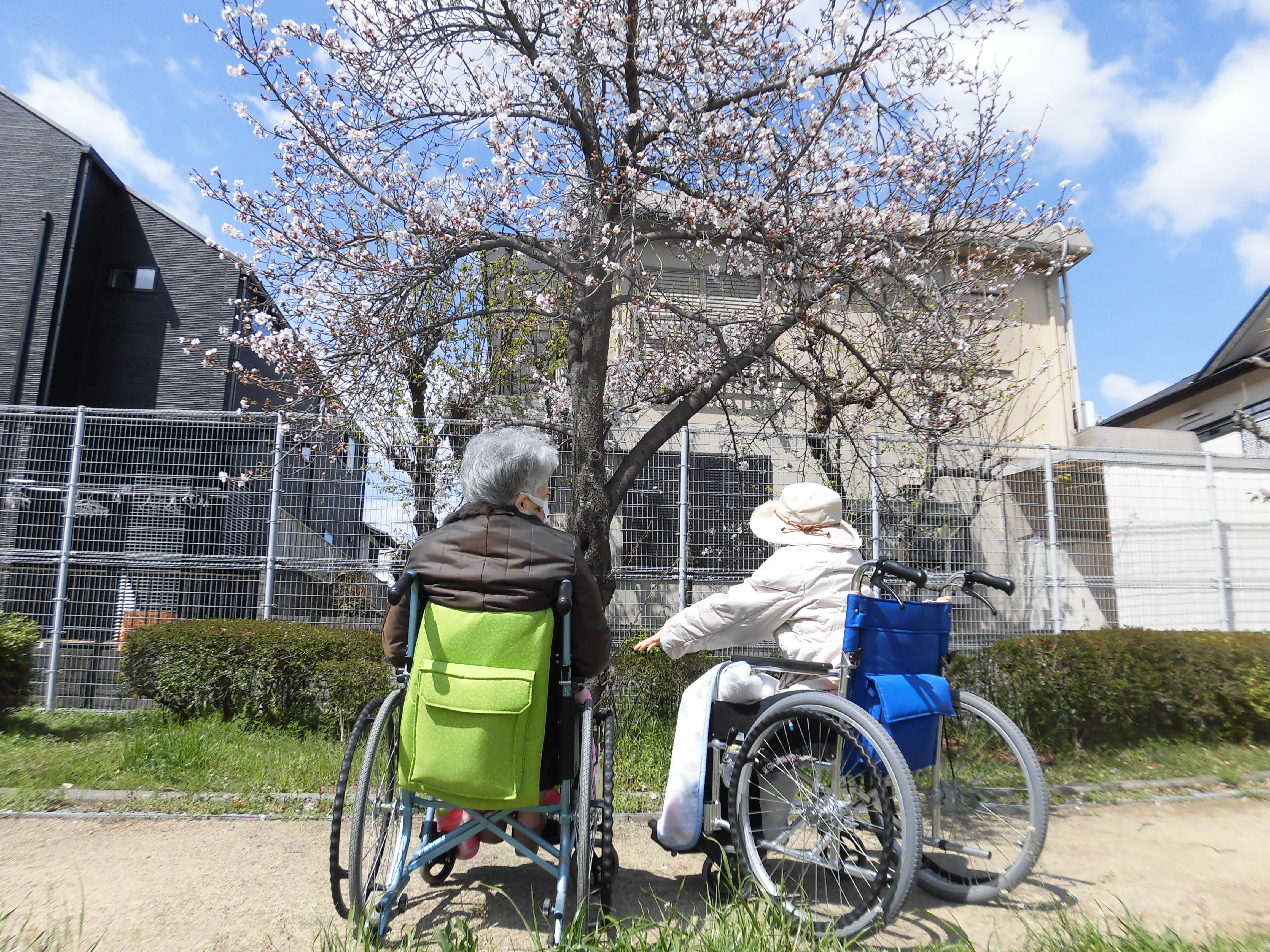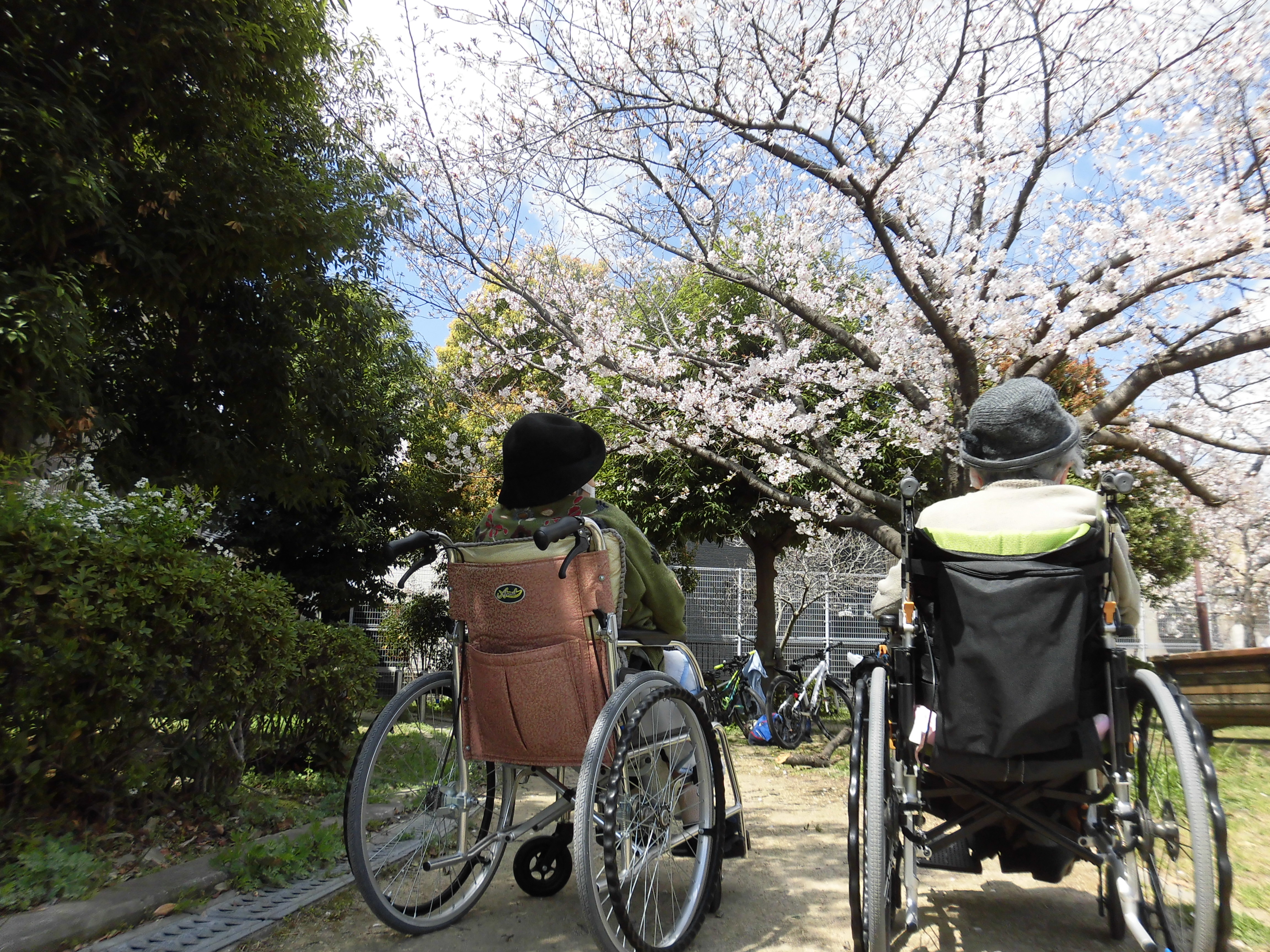 先日の万博公園へのお花見には参加されなかった入居者様にも、是非春を感じて欲しいと近くの公園へお花見に出かけました。