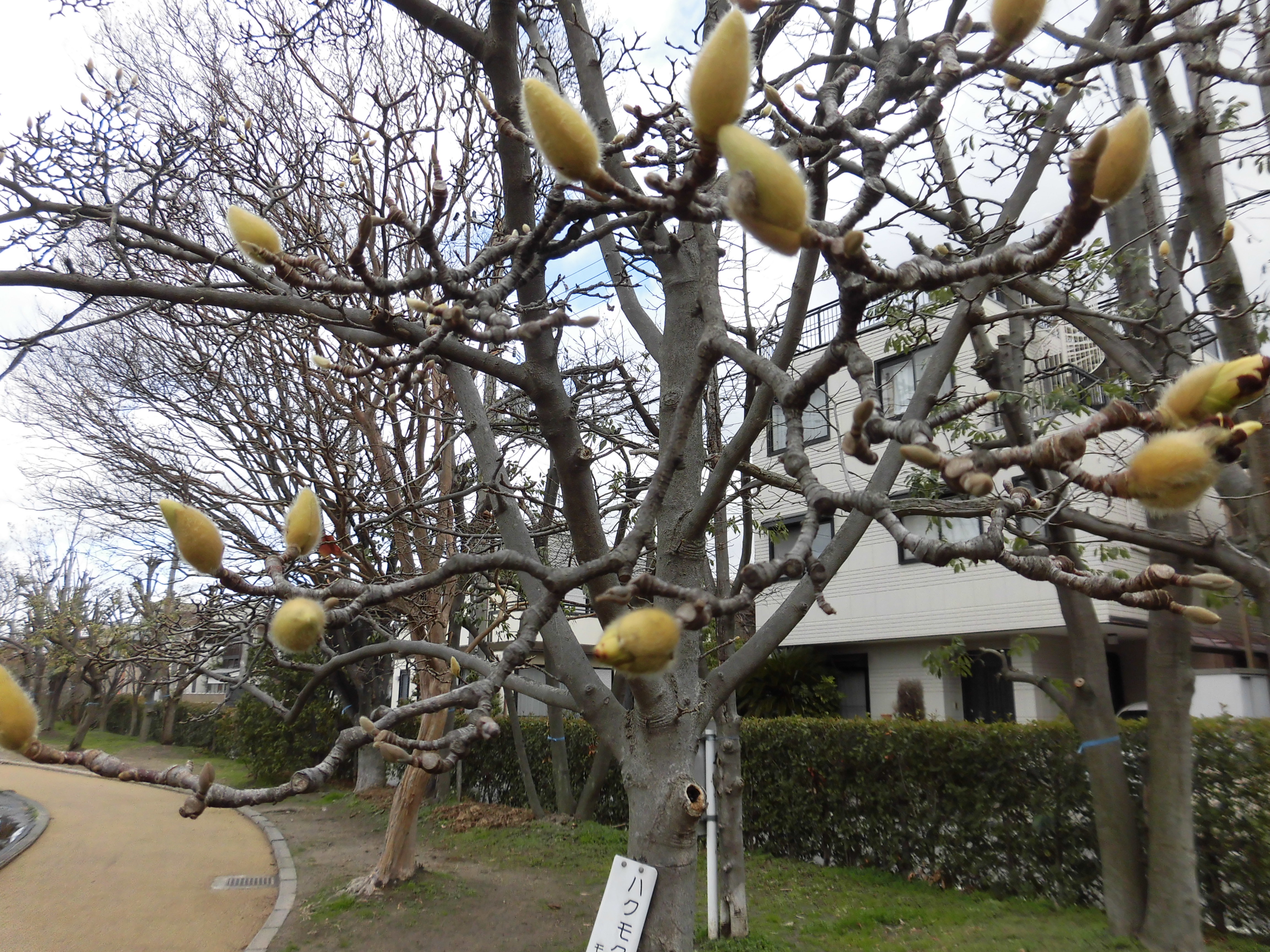 郵便局からの帰り道の若園公園でハクモクレンの木を見つけました。