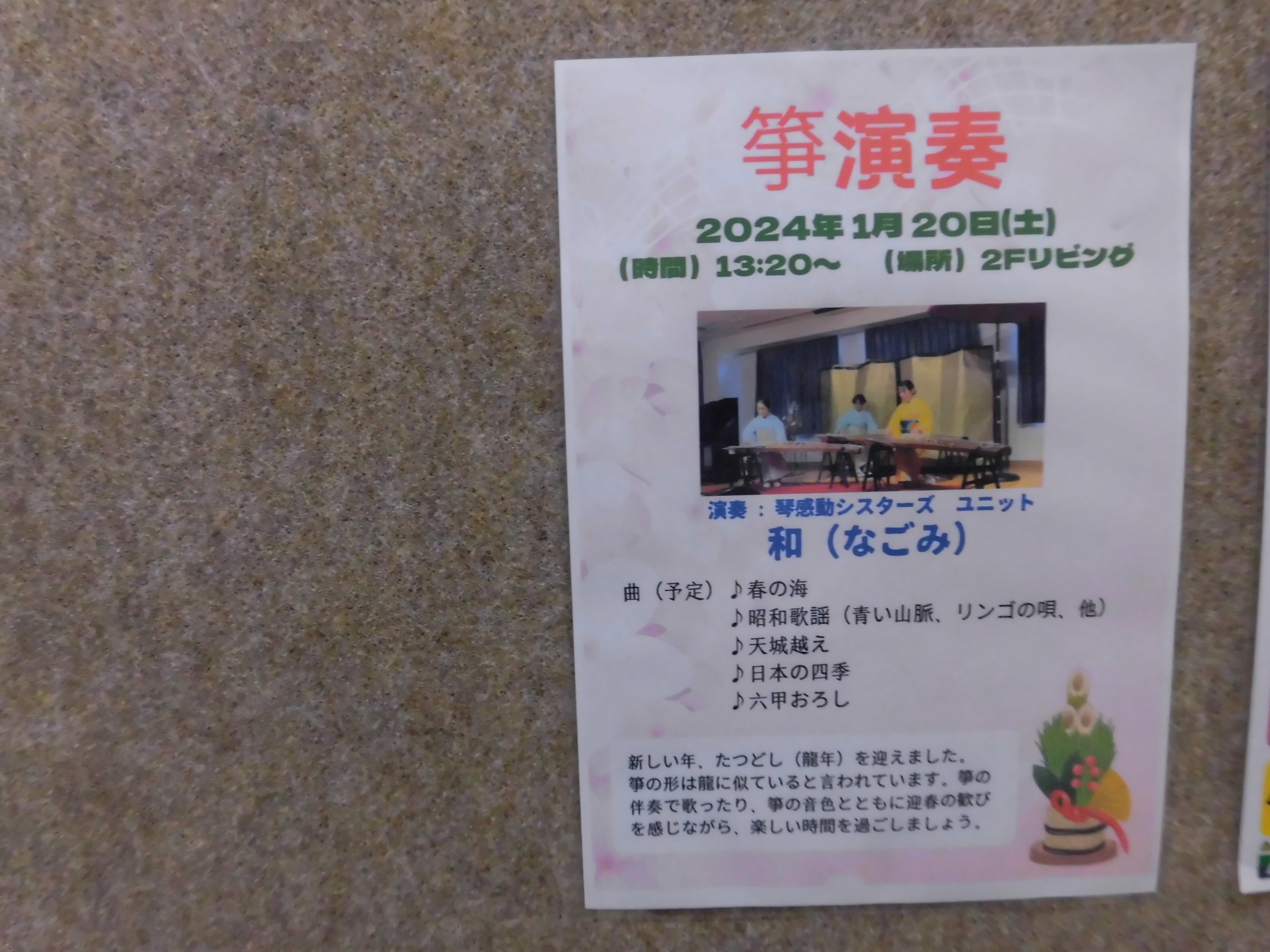 1月20日土曜日、レクレーションで筝の演奏を聴きました。