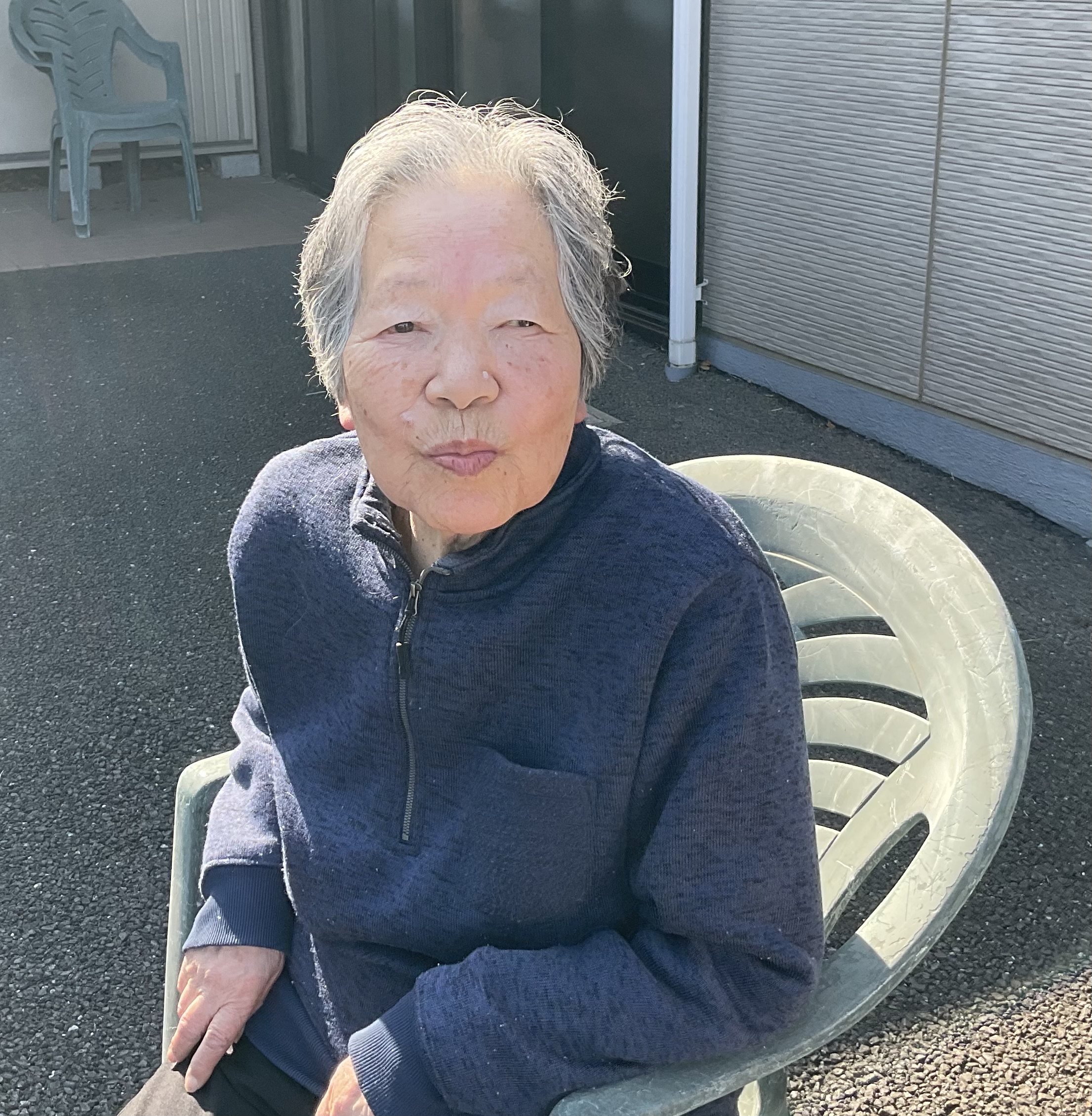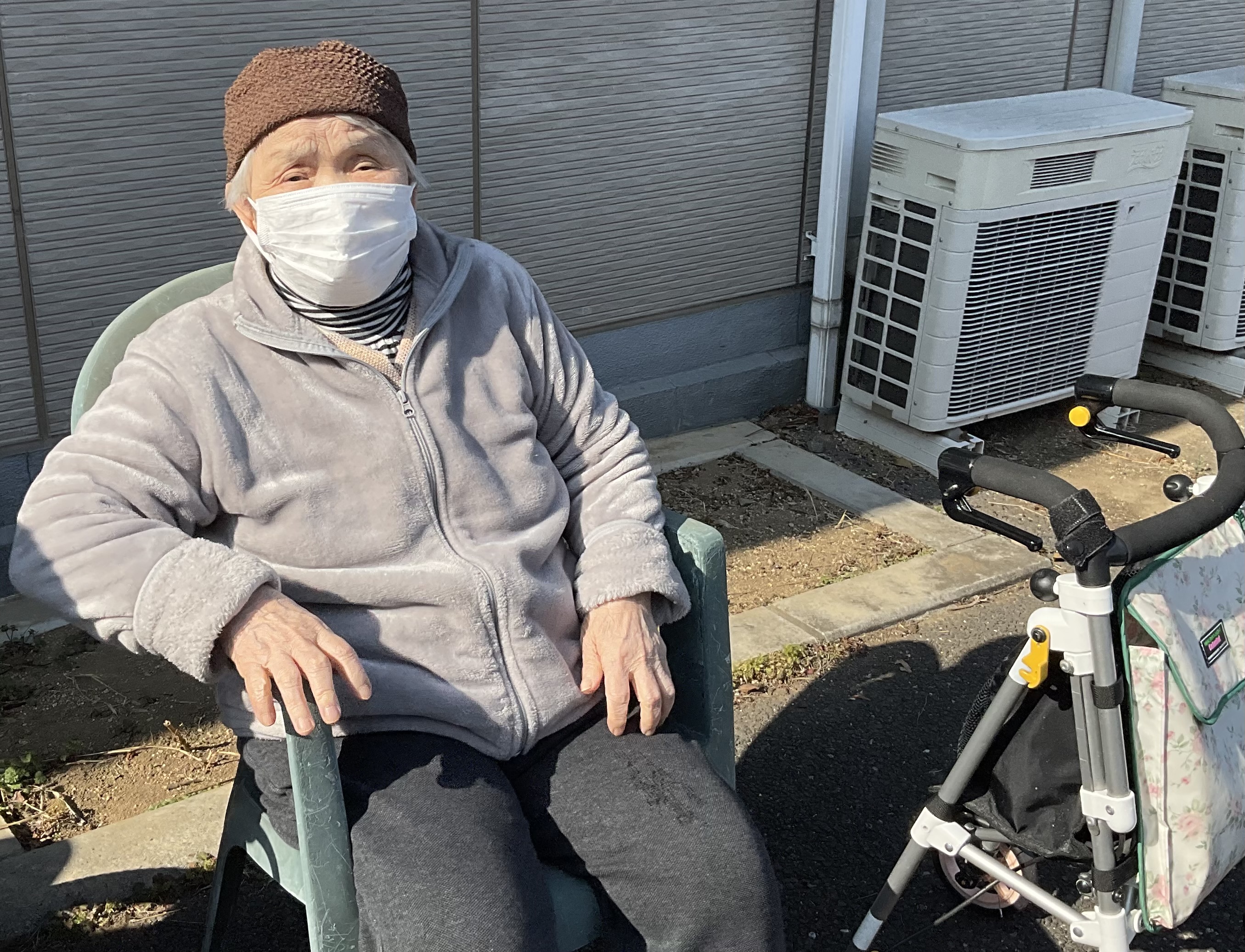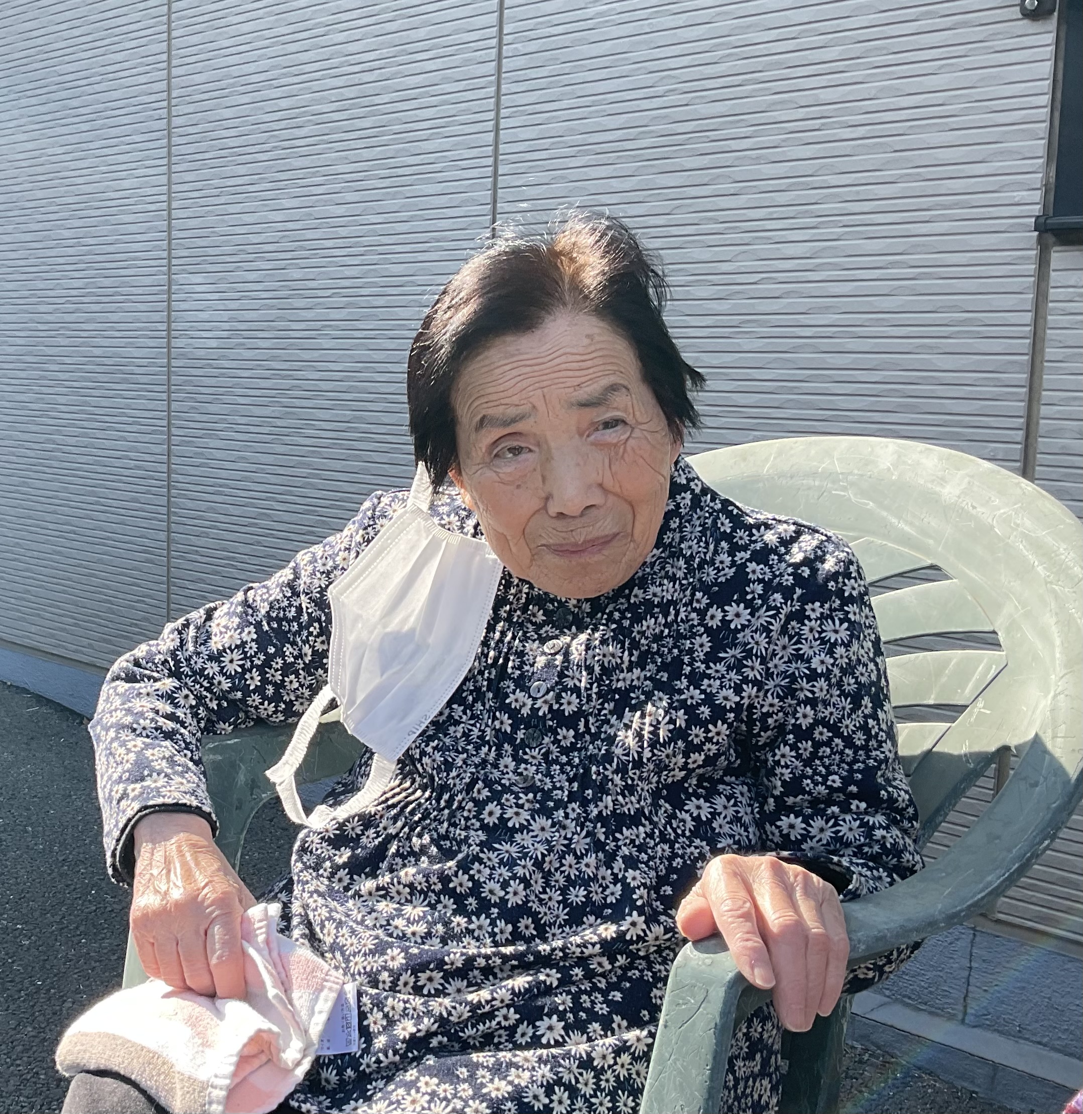 本日は小春日和で暖かく、みなさんで外気浴を行いました。